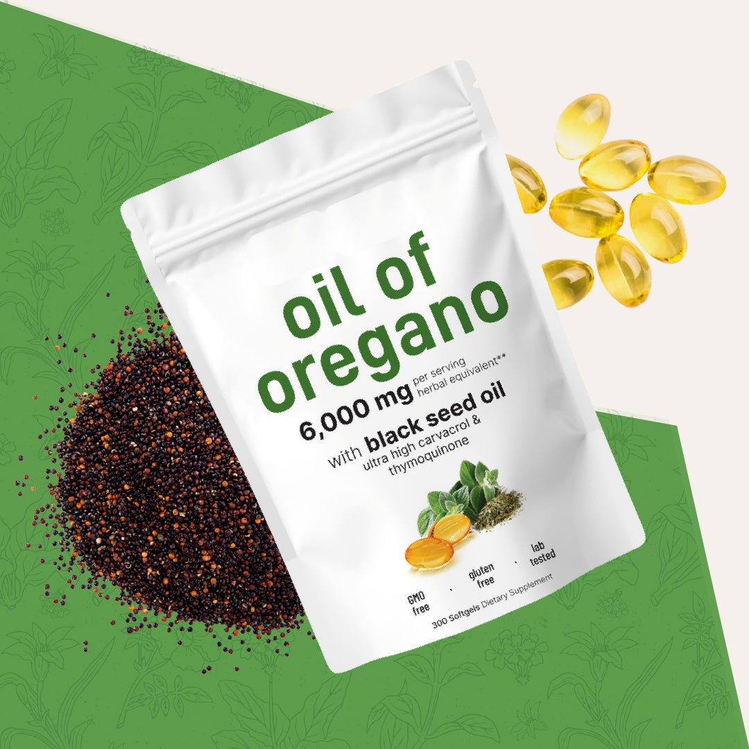 Nuestro complejo de aceite de orégano con semilla negra ayuda a limpiar tu organismo del crecimiento excesivo de la cándida, brindando alivio digestivo, menos hinchazón y mayor vitalidad.