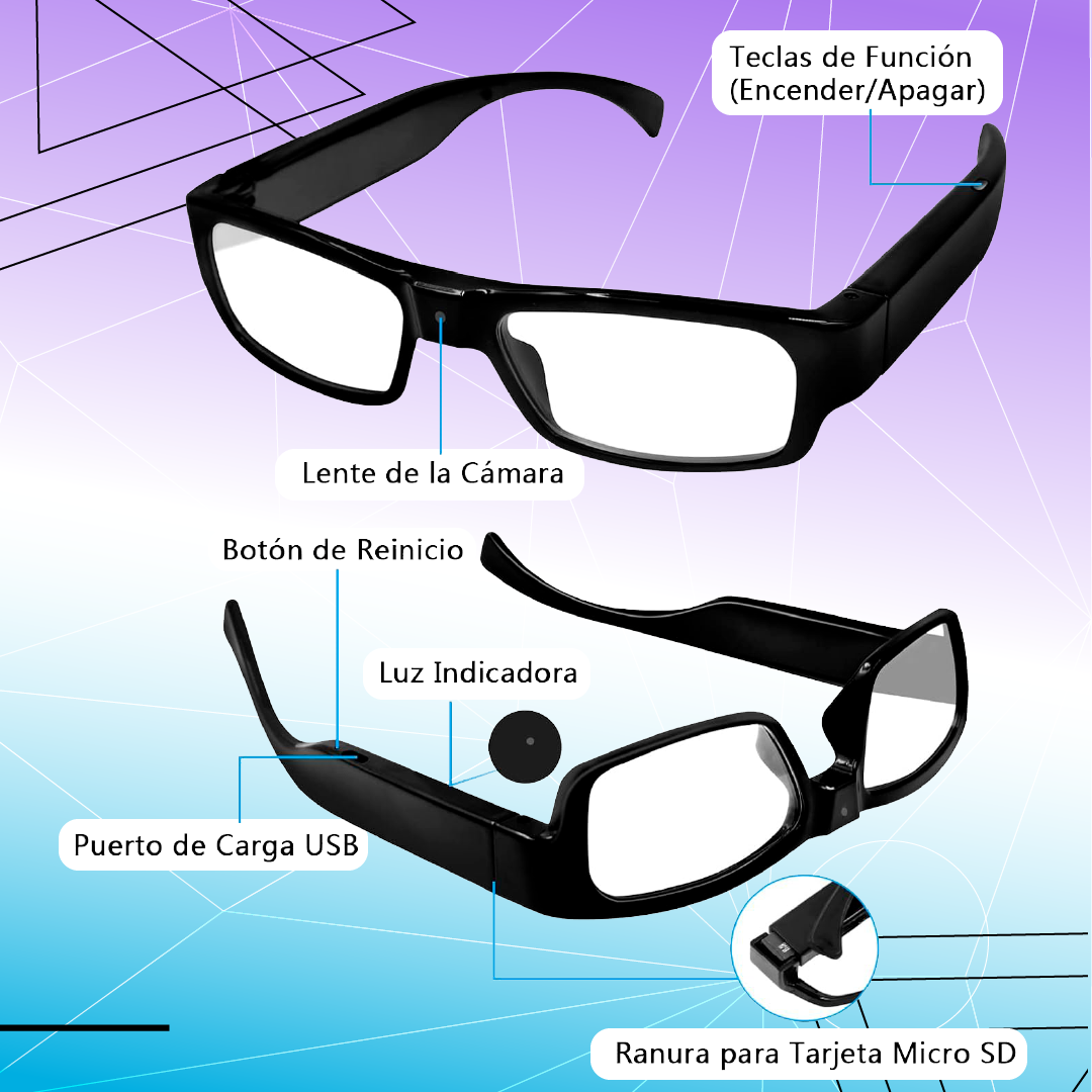 Con las gafas cámara espía HD, estarás siempre un paso adelante. Captura momentos importantes, pruebas clave con total discreción y calidad.