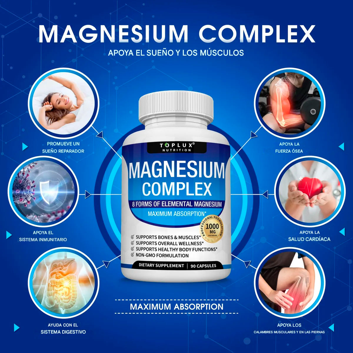 La mezcla de 8 formas de magnesio favorece la densidad ósea y la recuperación muscular tras la actividad física. Protege tu cuerpo del desgaste y mantente fuerte y activo en cada movimiento.