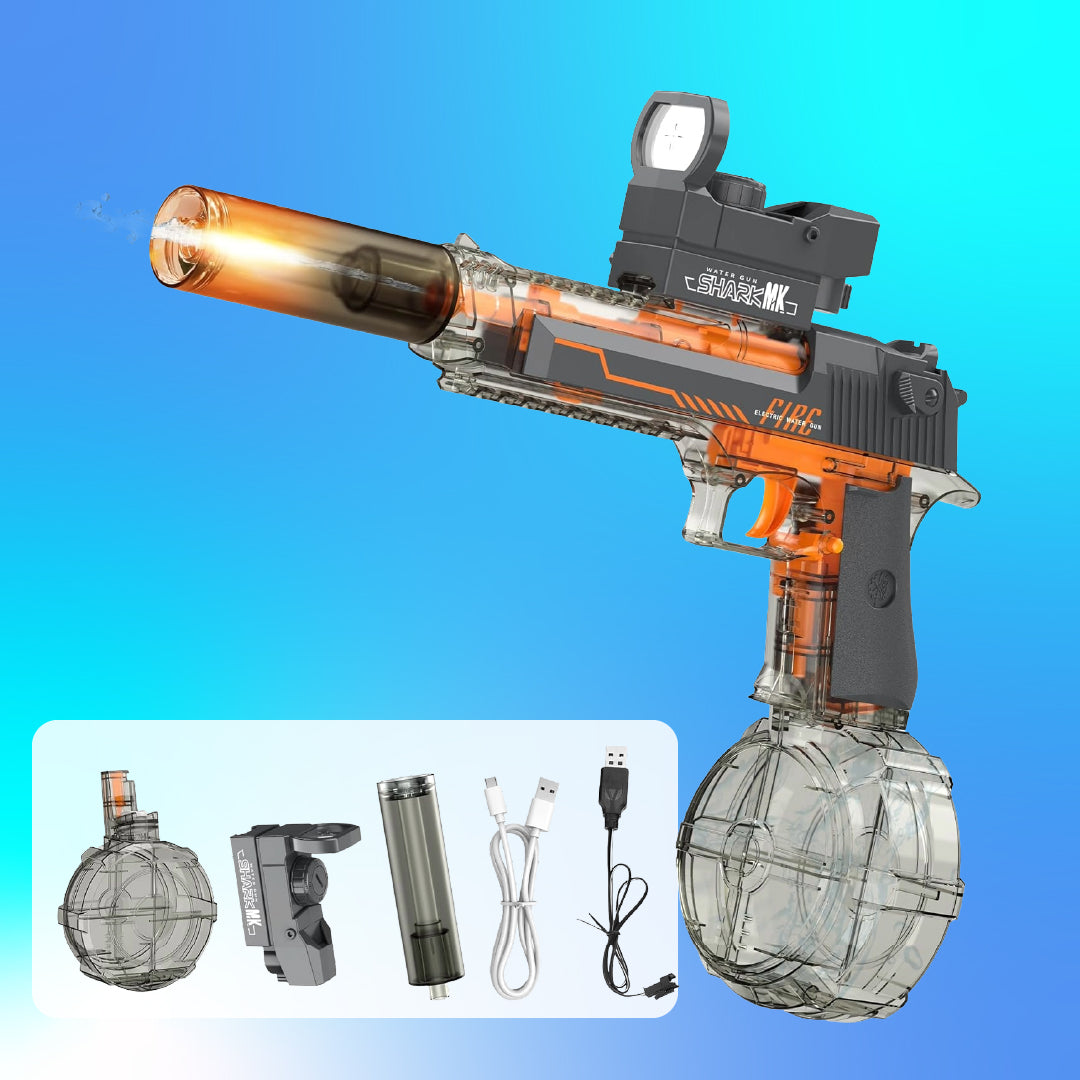 Boquilla iluminada, doble modo de disparo, tanque XL y batería potente. No es solo un juguete, es una máquina de diversión acuática.